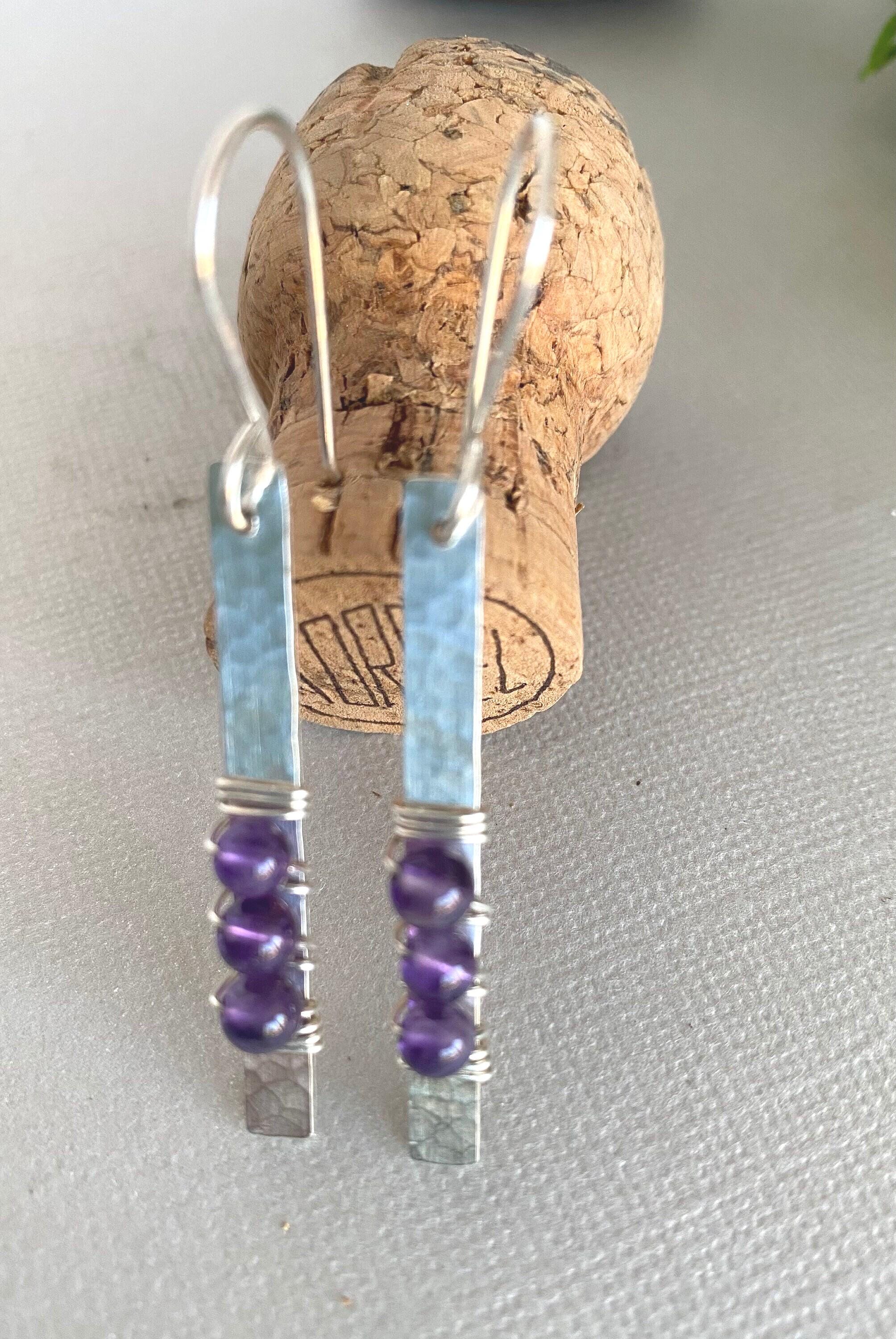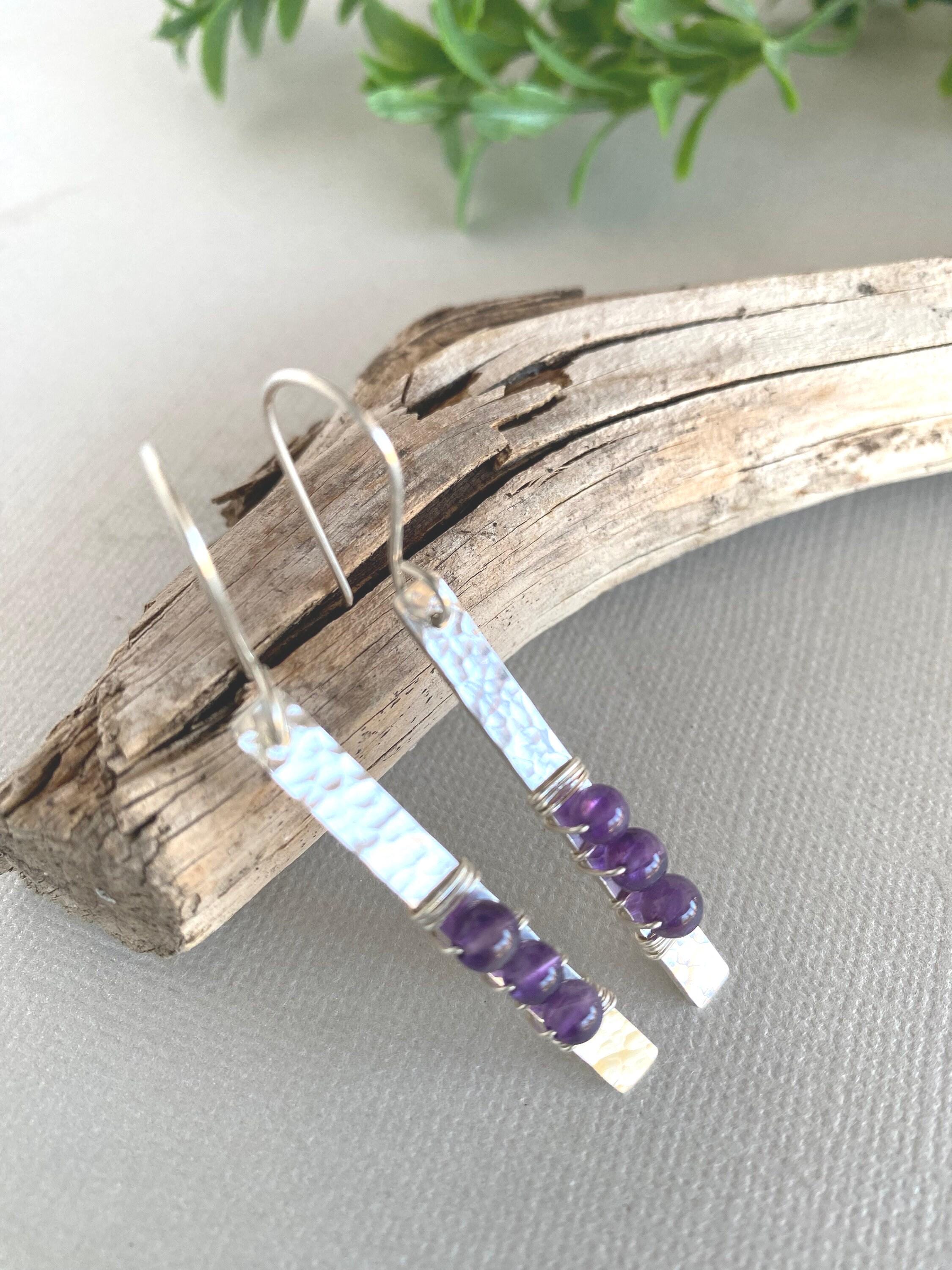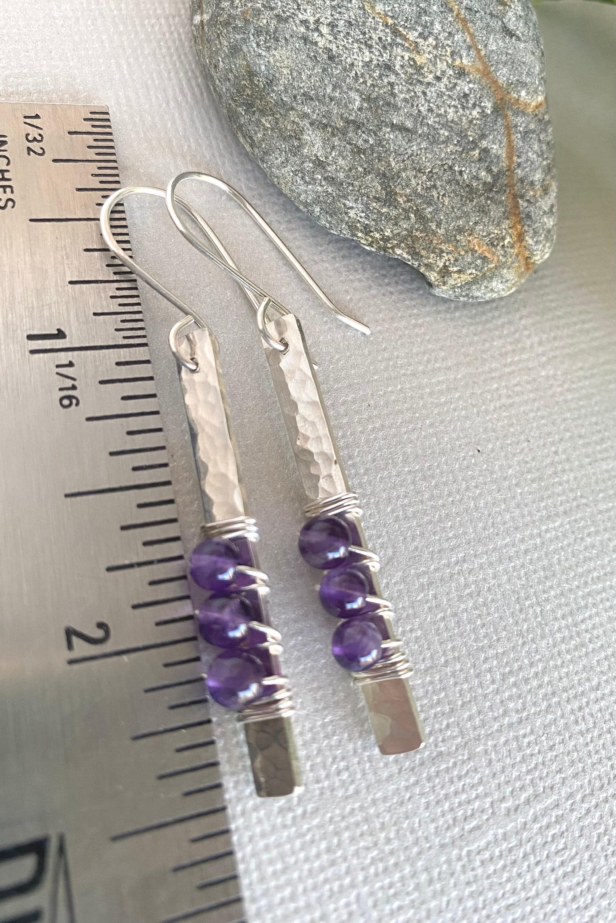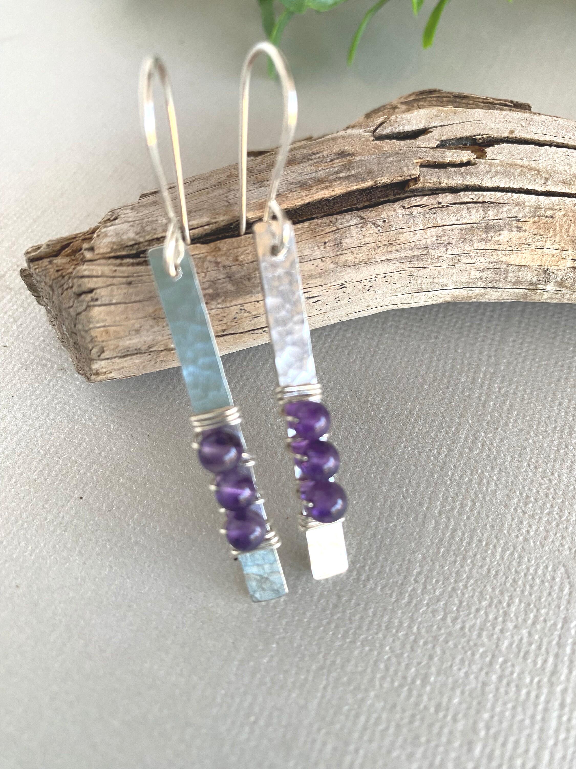 Amethyst Sterling Silver Bar Dangle Earrings, Handmade Sterling silver Earrings, Amethyst Earrings