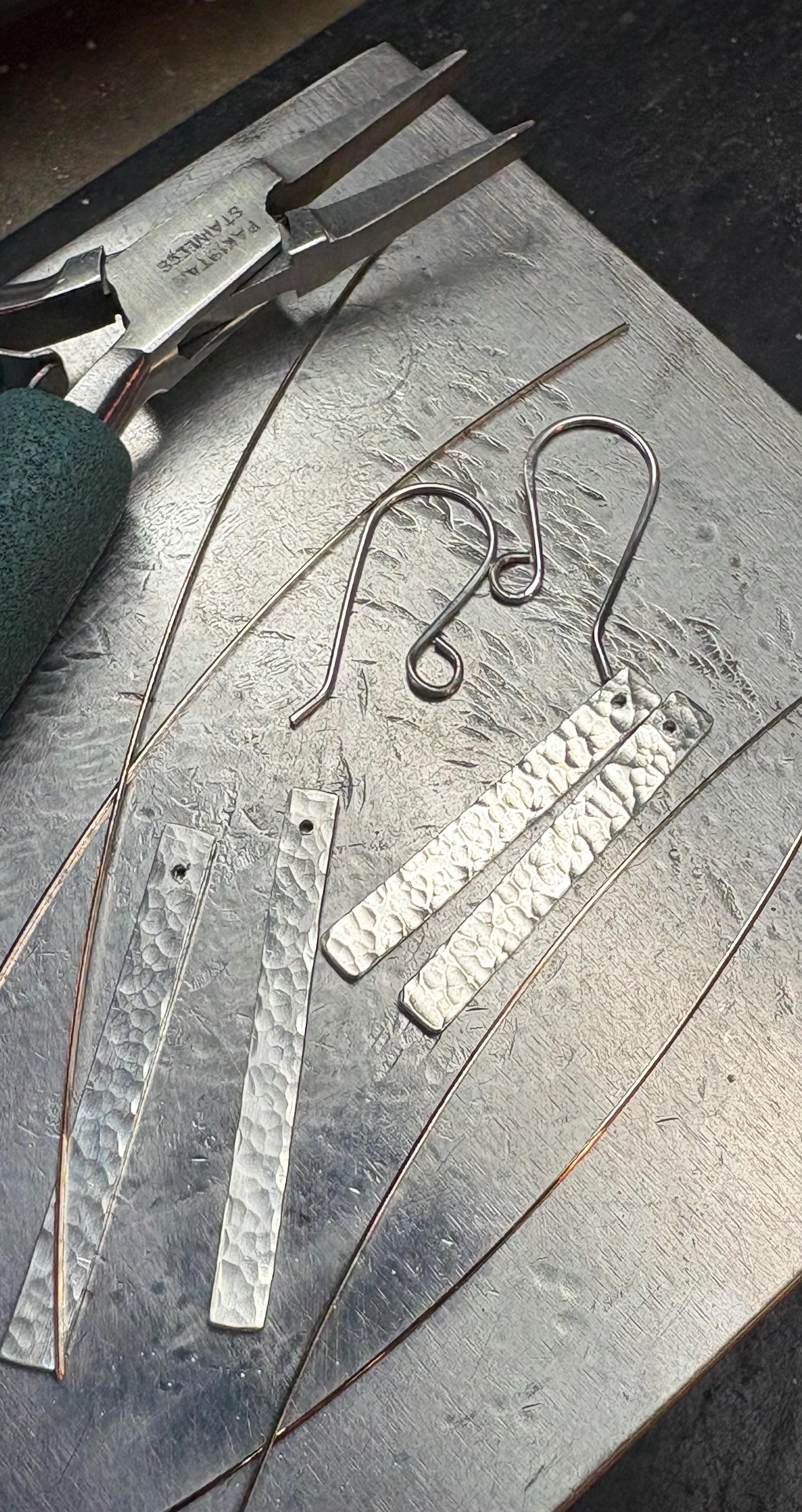 Sterling silver dangle hammered earrings are very light weight and fun to wear with just about anything!