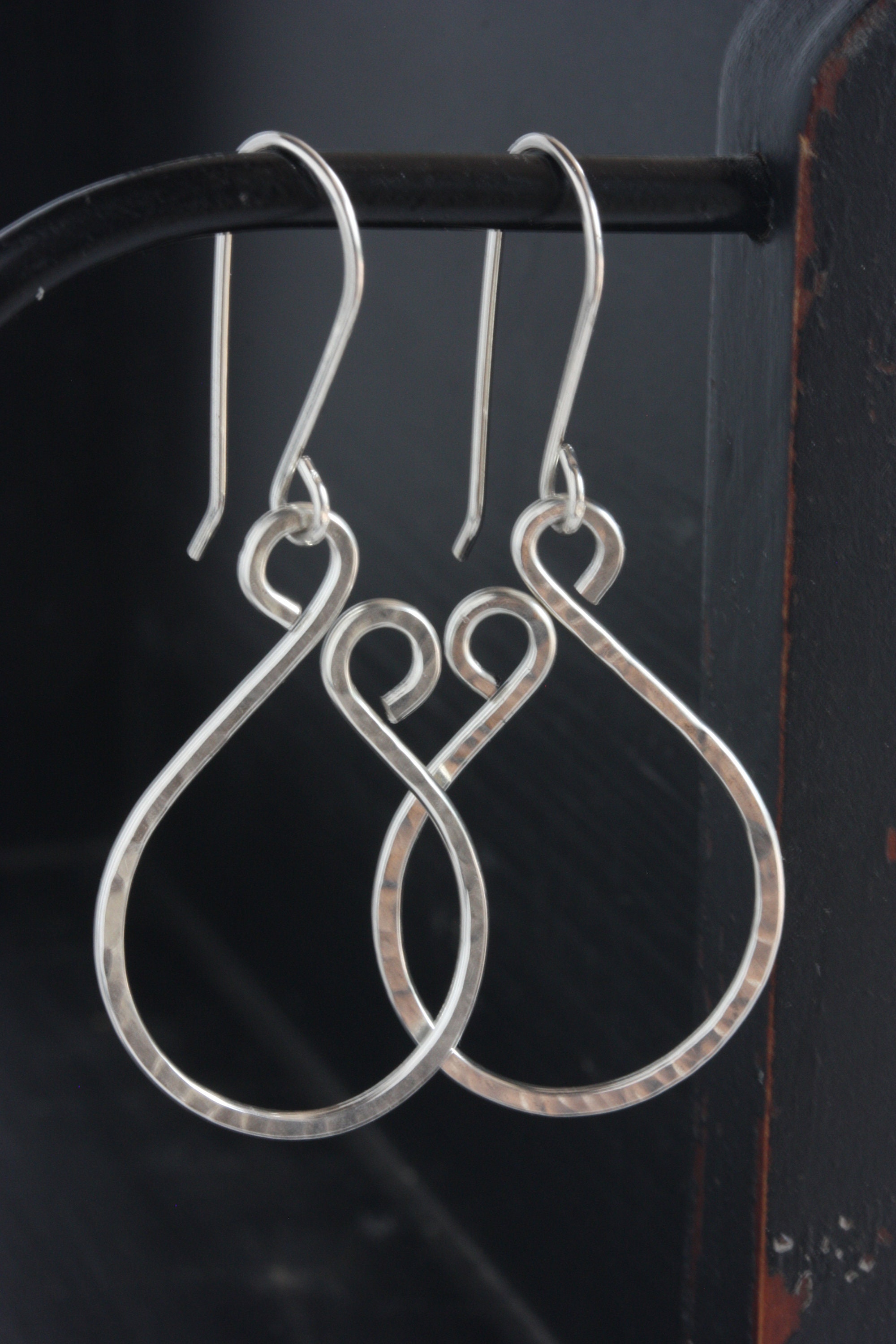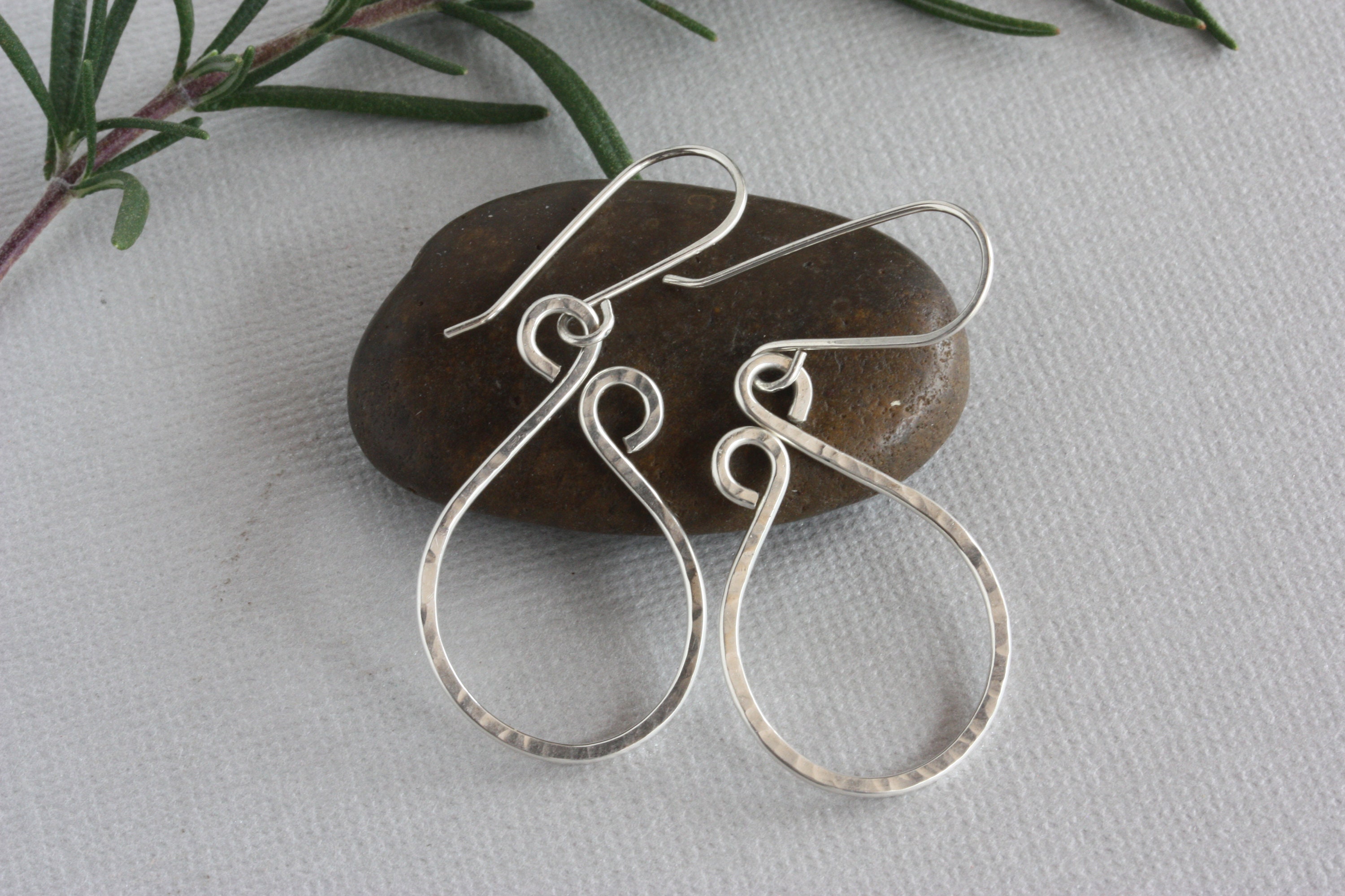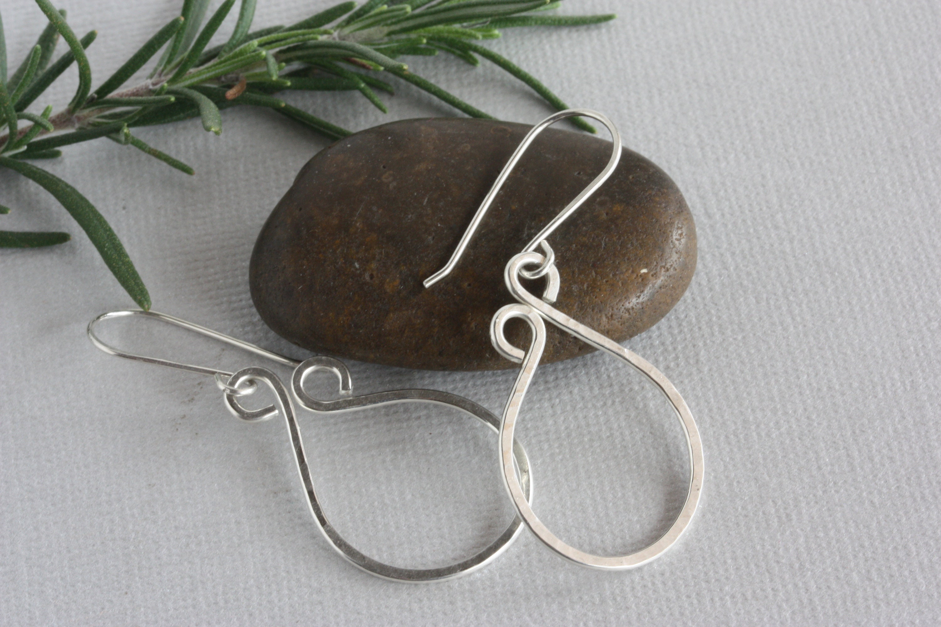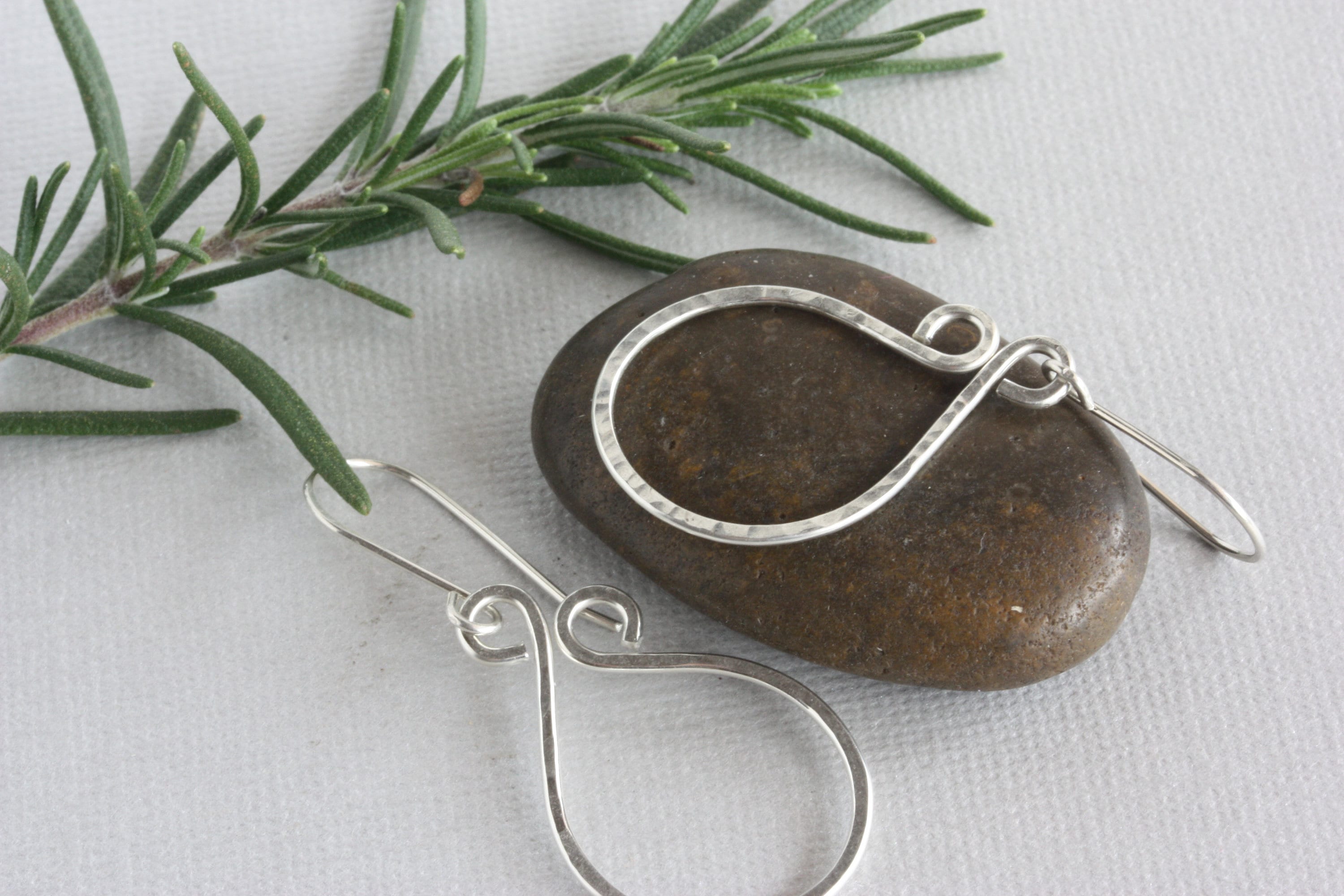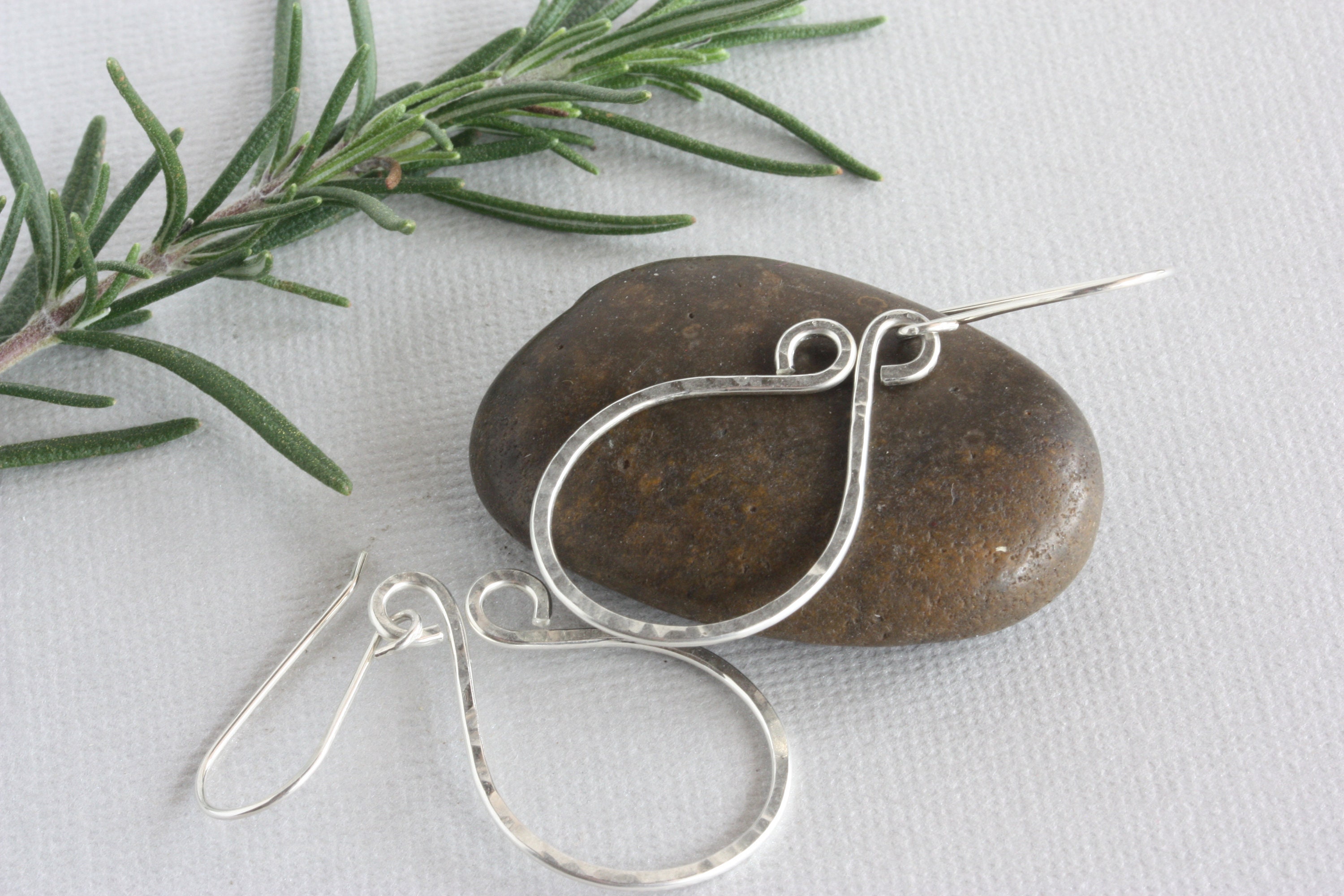 Sterling silver wire was hand textured with a hammer and shaped and coiled at the top to complete these fun hoop everyday earrings. You can wear these with everything from jeans to dresses. They are one of my favorite earrings to wear!